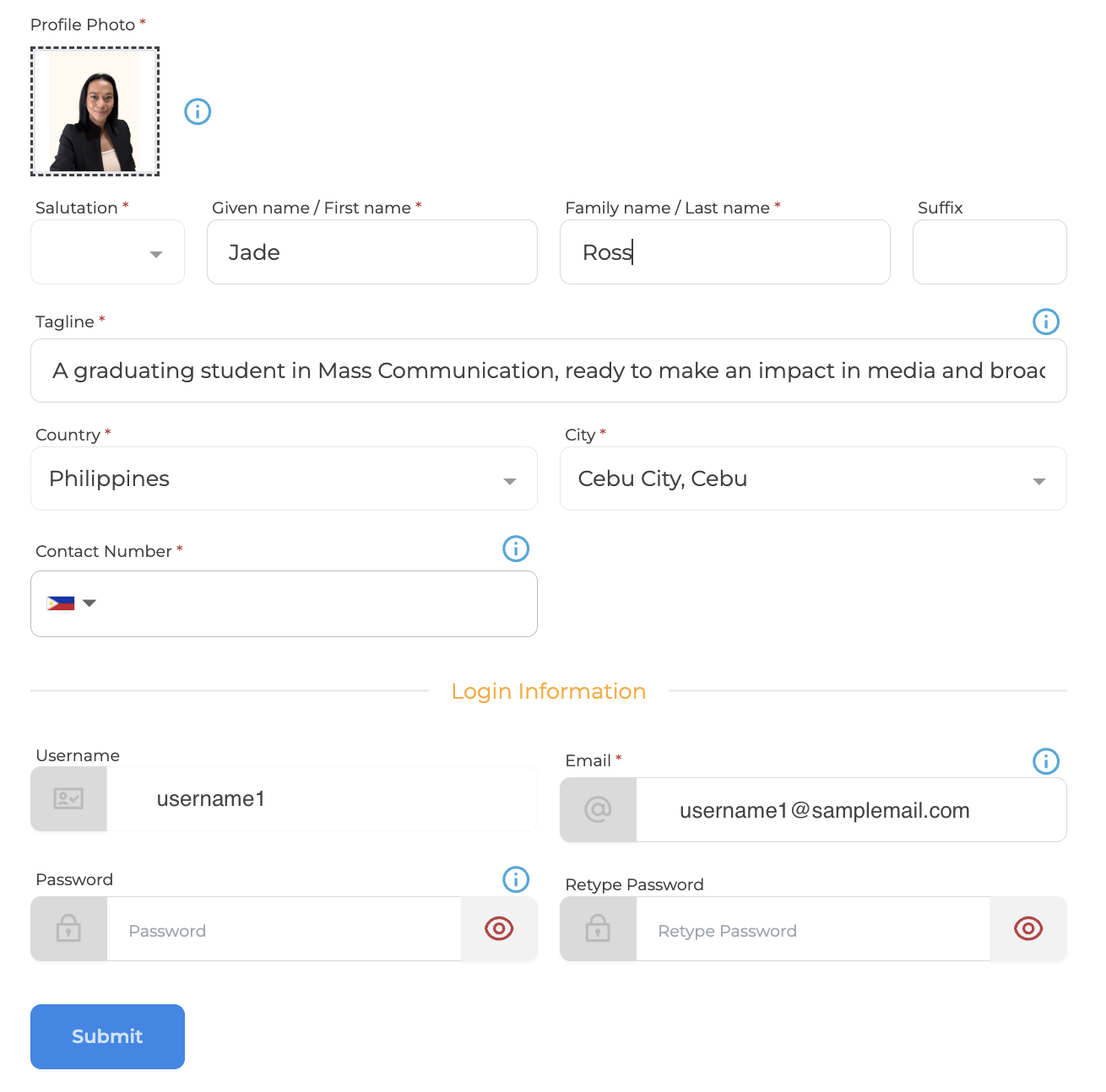 3. You will be directed to the Account Information page. You can update your information here and view or edit your login details. Click Submit to save your changes.