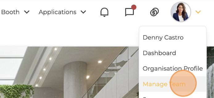 2. Upon successful login, you will be directed to the landing page. Hover over the profile icon to expand the menu, then select Manage Team.