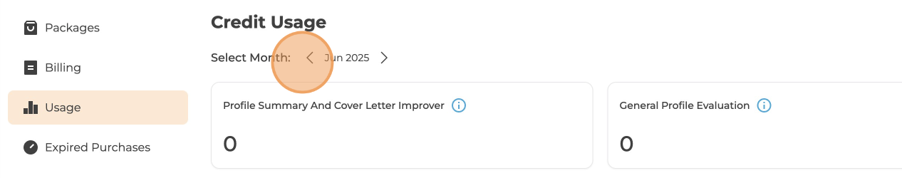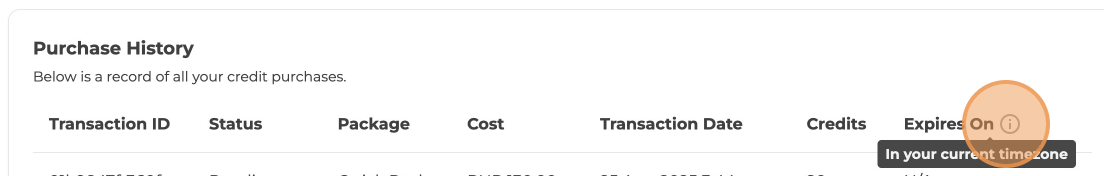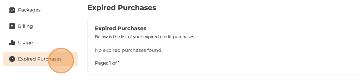 Select Expired Purchases to view a list of your Expired Credit Purchases.