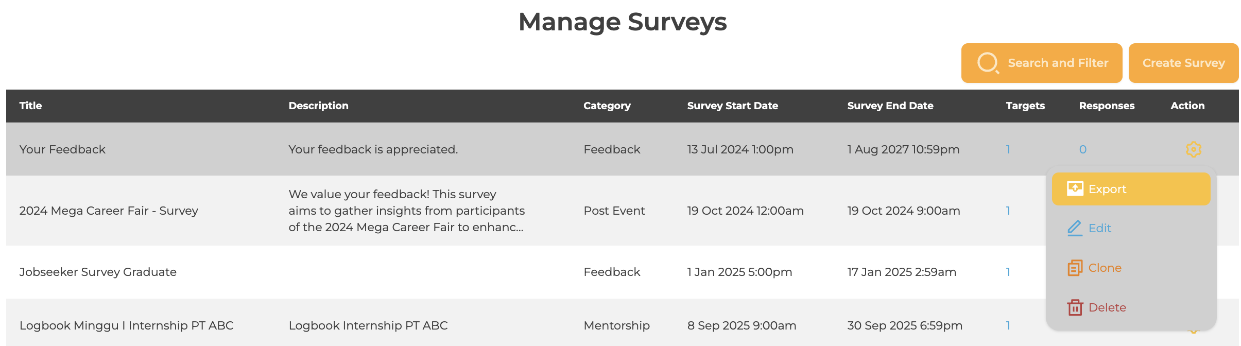 Managing surveys through options like Export, Edit, Clone, or Delete is essential for effective data handling, enabling you to analyse, update, or remove information as needed. This not only enhances decision-making but also maintains data integrity, empowering you to make the most informed choices for your organisation.