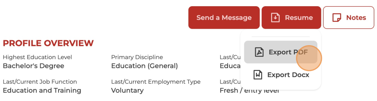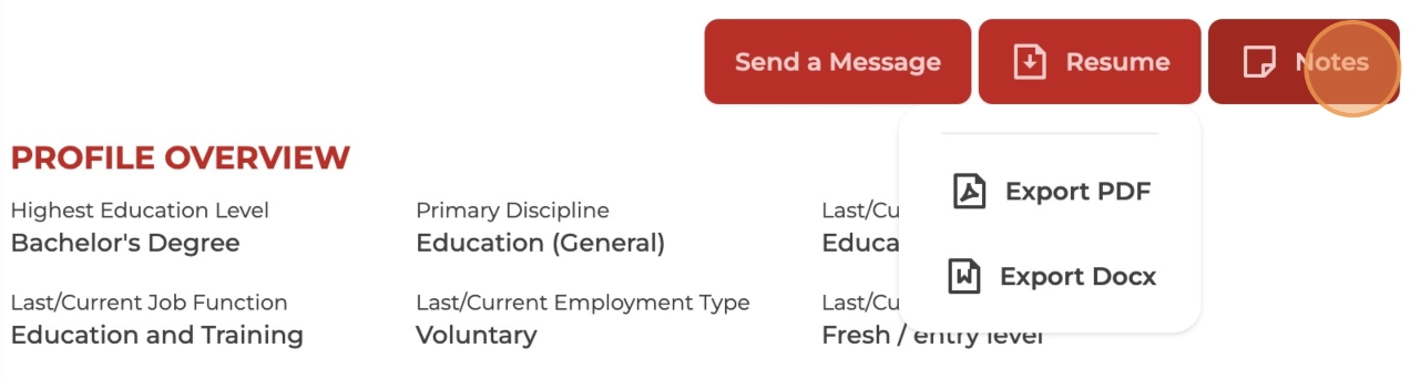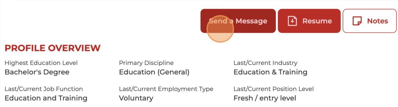 To get to know more about the candidate, feel free to send a message, download their resume, or leave notes on their profile—it's a great way to stay connected and organised!