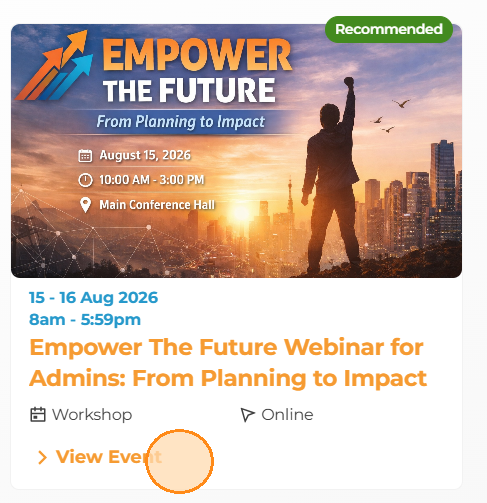 3. You will see a list of events available in the portal intended for site admins. Click View Event to see the event details, including the description, date and time, location, and relevant links.