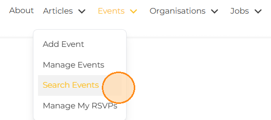 2. After a successful login, you will land on your dashboard. Hover over Events to expand the menu, then select Search Events.