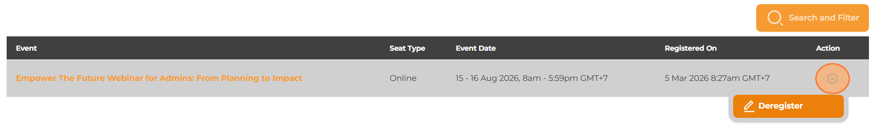 5. Manage and review your RSVP on the Manage RSVP page. You may also deregister if needed.