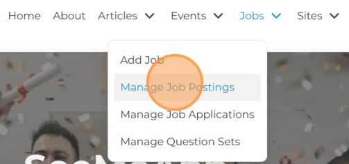 2. You will land on your dashboard upon successful login. Click on Jobs to expand the menu and Select Manage Job Postings.