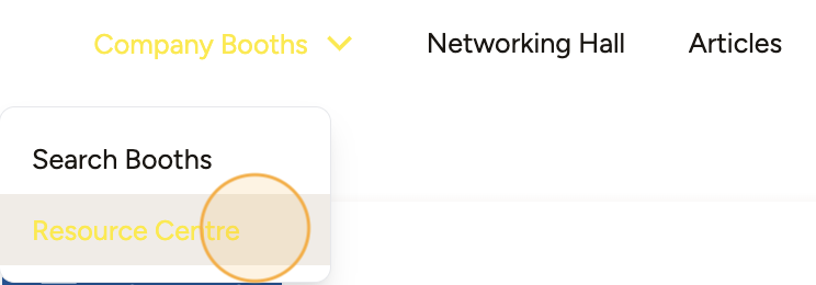 2. Upon successful login, you will be directed to the landing page. Click on Company Booths, then choose Resource Centre to browse the available opportunities inside the Virtual Fair.