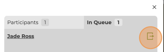 6. Once they join the link, a red dot 🔴 will appear on the human icon to indicate they are ready to join. Click the human icon, go to In Queue, then select Admit to start your chat session.