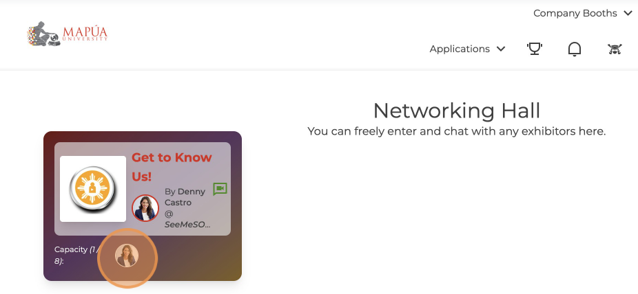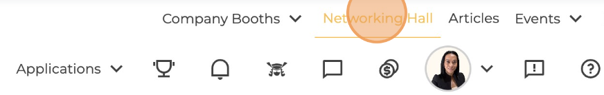 The Networking Hall allows you to network and video chat with employers or exhibitors. (The name may vary depending on how the organiser has customised it.)