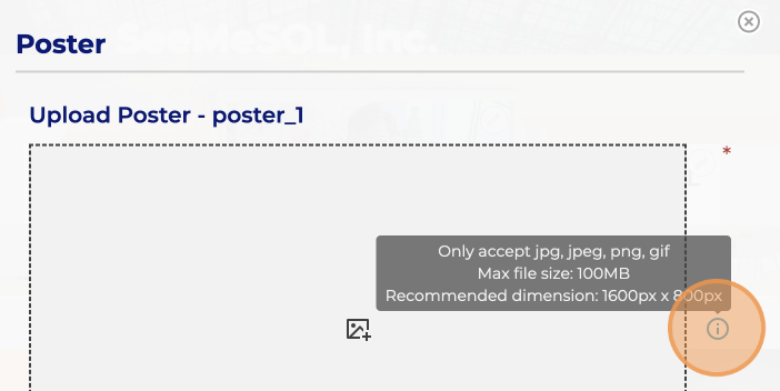 5. Upload a video and posters to showcase your company’s story, culture, or values — eye-catching visuals help capture attention and attract the right candidates. Hover over the tooltip to view the recommended dimensions and file requirements.