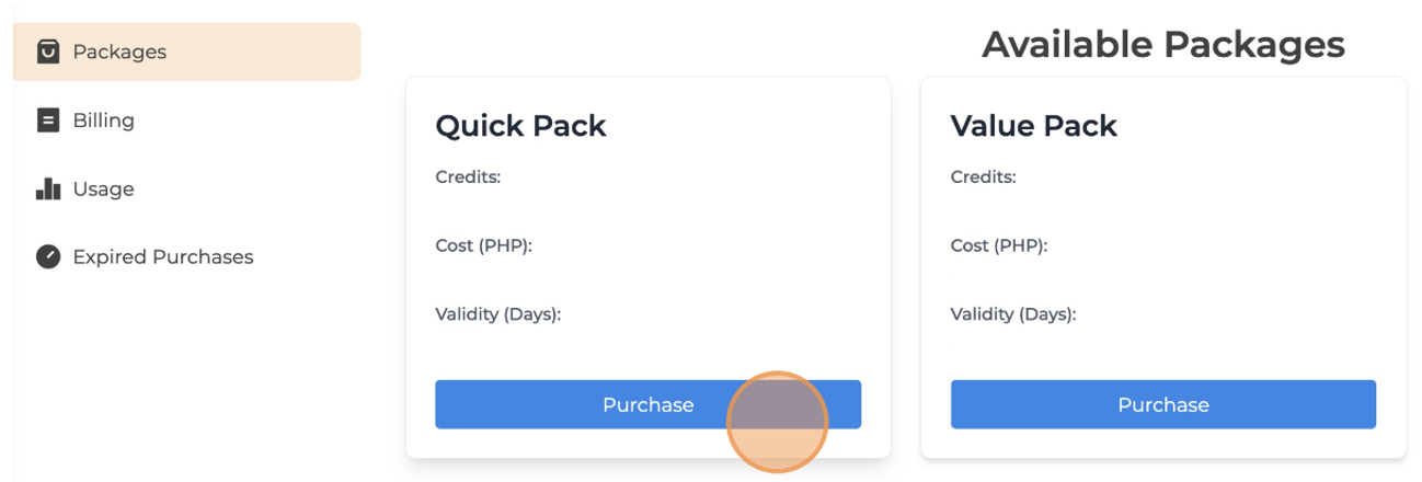 3. Under the Packages column, select your desired package, click Purchase, and then click Proceed to confirm your purchase.