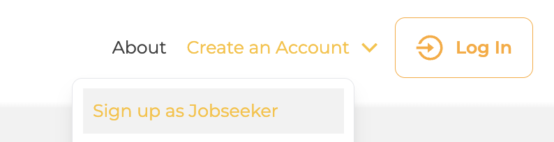 On Desktop: On the upper right navigation bar, hover over Create an Account and click to expand the dropdown menu. Select Sign Up as Jobseeker.