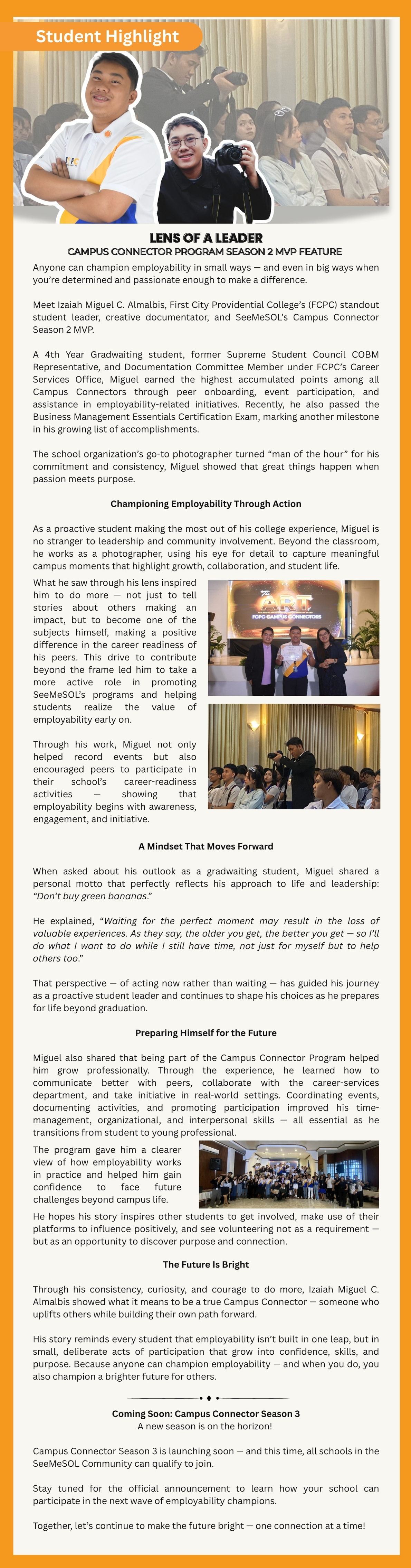Student Highlight : Lens of a Leader