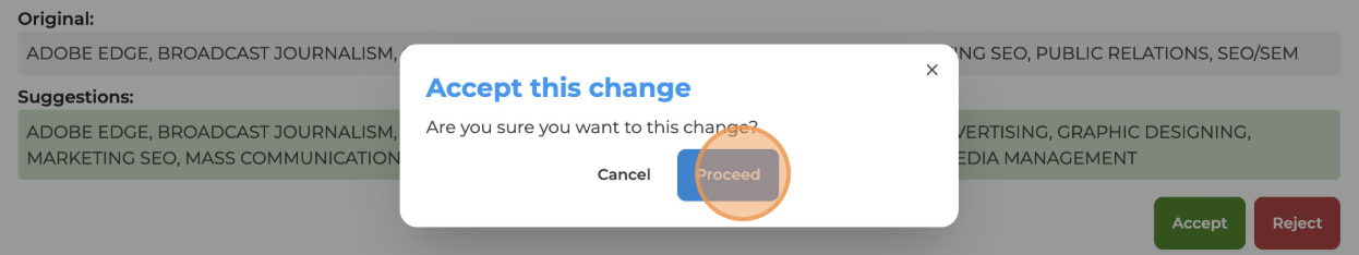 5. Scroll down to view the recommendations. Review, click Accept, and then click Proceed to apply the changes.