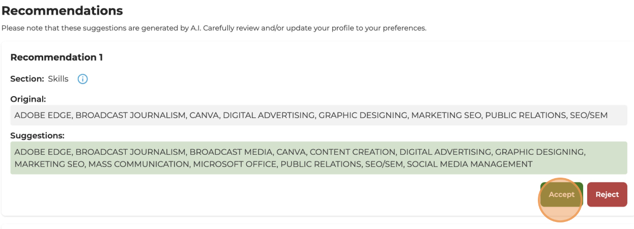 Always review the recommendations and ensure they align with your skills, experiences, and what best represents you.