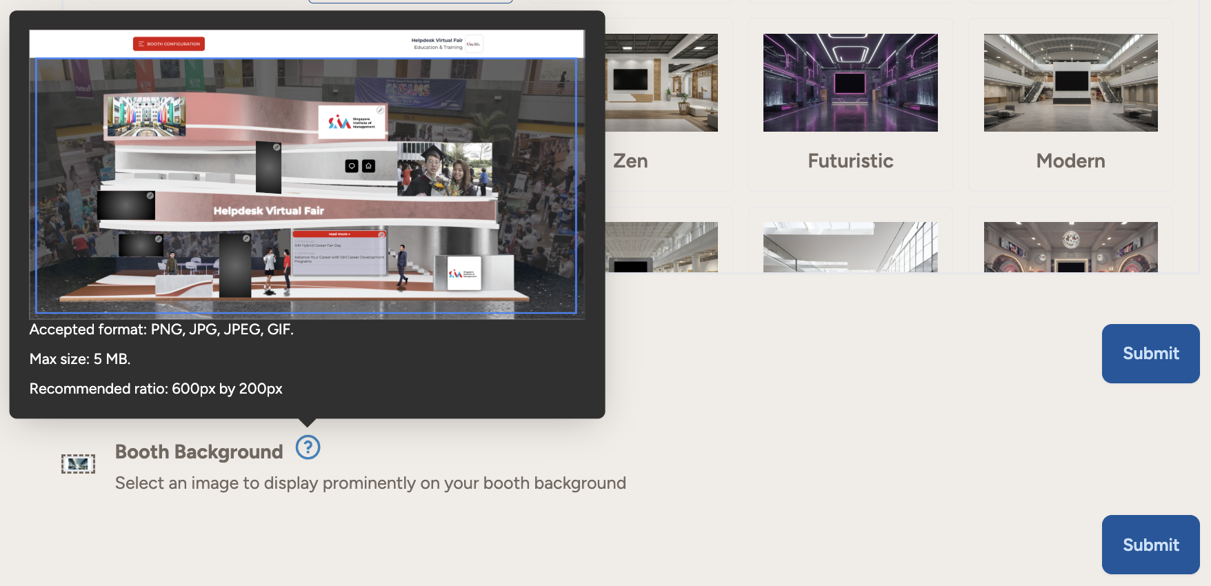 Booth Background: Select a high-quality image to display prominently as your booth background.