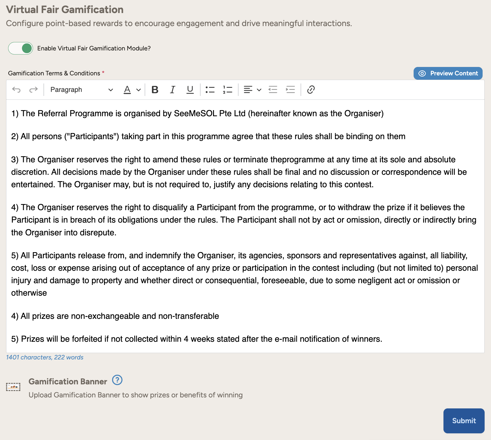 Virtual Fair Gamification: Configure point-based rewards to encourage engagement and drive meaningful interactions.