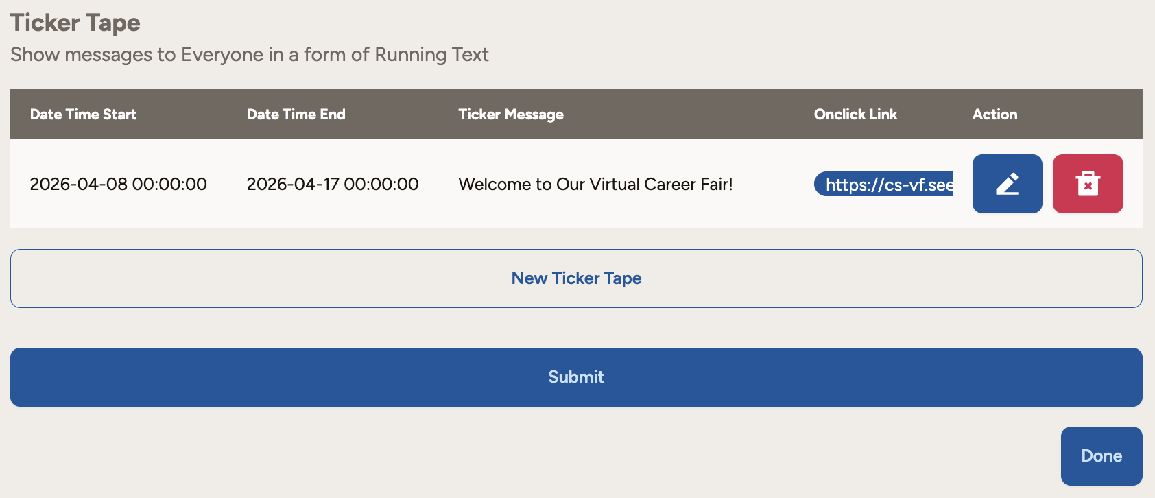 Ticker Tape: Display messages to everyone in the form of running text.