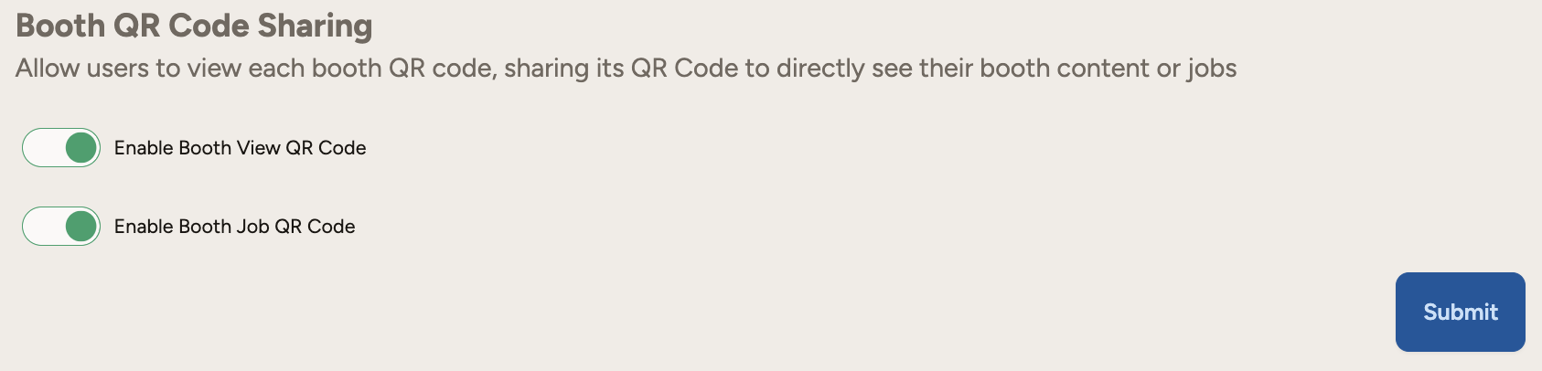 Booth QR Code Sharing: Allow users to view each booth QR code, sharing its QR Code to directly see their booth content or jobs.