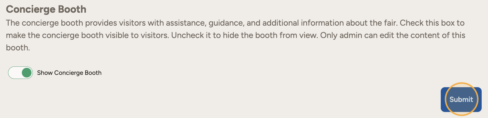 Concierge Booth: Check this box to make the concierge booth visible to visitors.