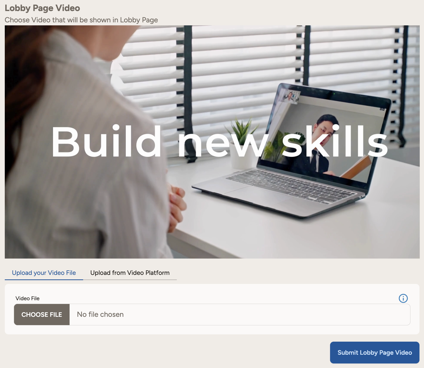 Lobby Page Video: Choose the video that will be shown on the lobby page.