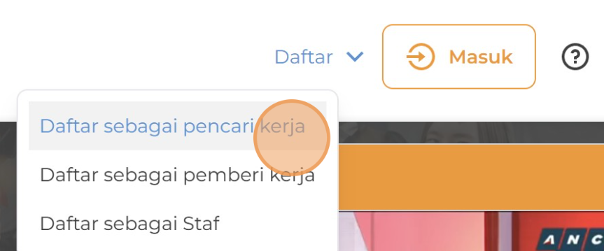 1. Masuk ke portal. Arahkan kursor ke Buat Akun untuk menampilkan menu dropdown, lalu pilih Daftar sebagai Pencari Kerja.