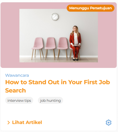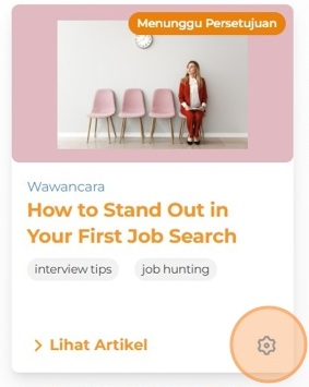 Status awal artikel yang baru ditambahkan adalah Menunggu Persetujuan; setelah disetujui, statusnya akan berubah menjadi Aktif dan tampil di situs.