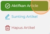 7. Sebagai admin situs, Anda dapat langsung menyetujui artikel Anda. Klik ikon roda gigi pada artikel yang baru dibuat, lalu pilih Aktifkan Artikel. Halaman akan diperbarui, dan artikel akan langsung terlihat oleh pengguna portal.