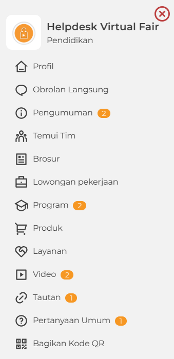 Tambahkan semua informasi yang relevan, seperti Profil, Obrolan Langsung, dan Pengumuman, untuk memastikan pengalaman yang lengkap dan interaktif bagi peserta.