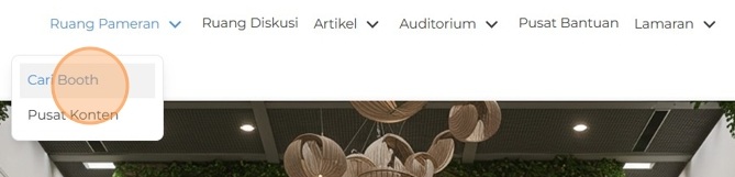 2. Setelah berhasil masuk, Anda akan diarahkan ke halaman utama. Klik Ruang Pameran lalu pilih Cari Booth pada tab atau di halaman utama.