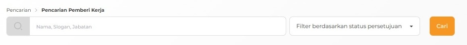 3. Anda akan berada di halaman daftar pemberi kerja. Gunakan pencarian dasar dengan memasukkan kata kunci dan klik Cari, atau gunakan filter Status Persetujuan untuk mempersempit hasil pencarian.