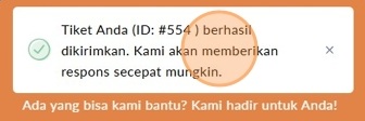 3. Setelah tiket berhasil dikirim, Anda akan menerima nomor tiket serta konfirmasi melalui email.
