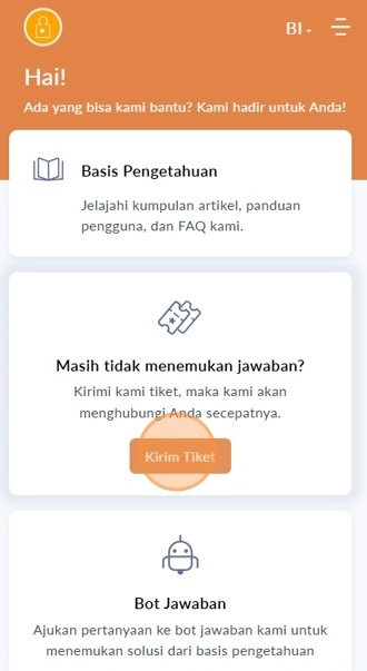 1. Klik ikon Assistance di bagian kiri bawah halaman dan pilih Kirim Tiket.