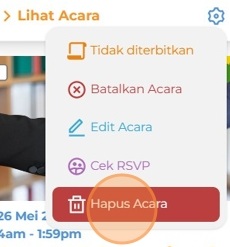 Klik Hapus Acara jika Anda ingin menghapus acara secara permanen.