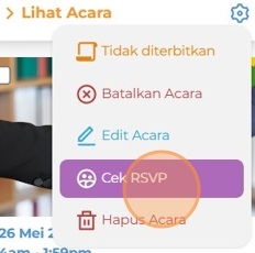 Klik Cek RSVPs untuk melihat jumlah RSVP atau total pendaftar acara Anda. Anda juga bisa mengunduh daftar RSVP dalam Excel.
