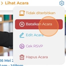 Klik Batalkan Acara jika Anda ingin membatalkan acara yang telah diajukan, kemudian berikan alasan pembatalan dan klik Batal untuk melanjutkan.
