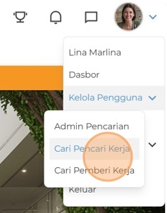 2. Setelah berhasil masuk, Anda akan diarahkan ke halaman utama. Arahkan kursor ke ikon profil untuk membuka menu, lalu klik Kelola Pengguna, kemudian pilih Cari Pencari Kerja.