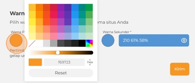Warna Tema Situs – Pilih warna primer dan sekunder untuk tema situs yang Anda inginkan, lalu klik Kirim.