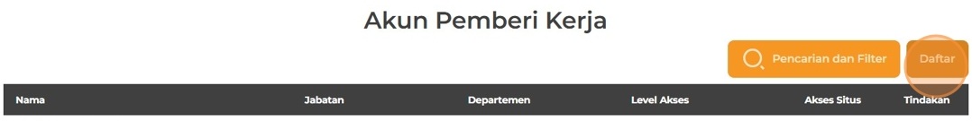 3. Anda akan diarahkan ke halaman akun pemberi kerja. Klik Daftar untuk mendaftarkan rekan yang akan membantu mengelola akun perusahaan/organisasi Anda.