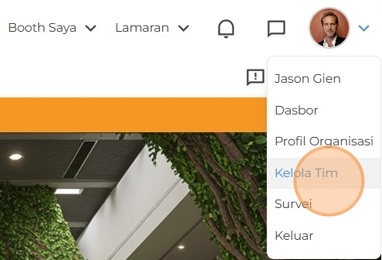 2. Setelah berhasil login, Anda akan diarahkan ke halaman utama. Arahkan kursor ke ikon profil untuk memperluas menu, lalu pilih Kelola Tim.