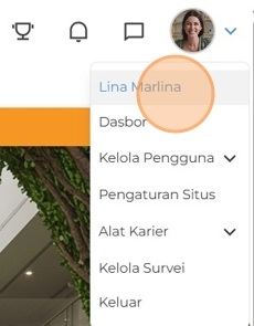 2. Setelah berhasil masuk, Anda akan diarahkan ke halaman utama. Arahkan kursor ke ikon profil untuk membuka menu, lalu klik nama profil admin Anda.