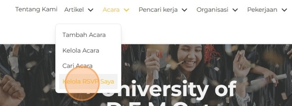 2. Setelah berhasil login, Anda akan diarahkan ke dasbor. Arahkan kursor ke menu Acara, lalu pilih Kelola RSVP Saya.