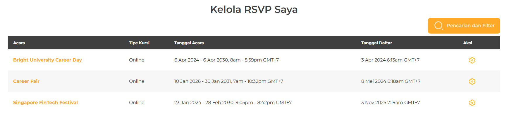 3. Halaman ini akan menampilkan daftar semua acara yang telah Anda daftarkan.