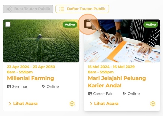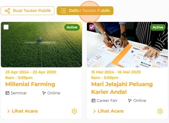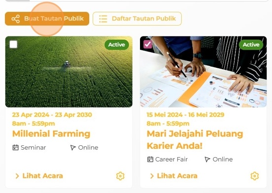 Bagikan acara Anda dengan mudah dengan membuat tautan publik—sehingga dapat diakses oleh audiens yang lebih luas. Ini adalah cara sederhana untuk meningkatkan visibilitas dan menarik lebih banyak peserta dengan mudah!