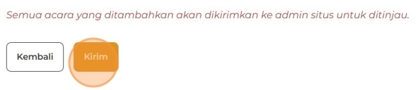 Status awal acara akan ditandai sebagai Menunggu Persetujuan. Setelah disetujui, status akan berubah menjadi Aktif dan acara akan terlihat di portal.