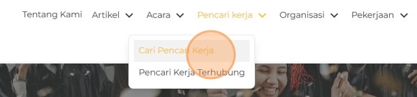 2. Setelah berhasil login, Anda akan diarahkan ke dashboard. Arahkan kursor ke Pencari Kerja, lalu klik menu tersebut.