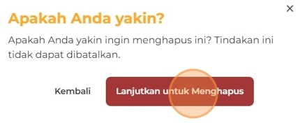 Untuk menghapus catatan, pilih catatan yang ingin dihapus, klik ikon hapus, lalu konfirmasi dengan mengklik Lanjutkan untuk Menghapus.