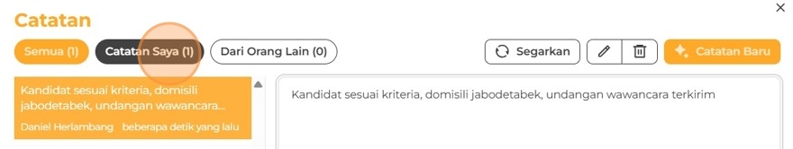Silakan tambahkan catatan saat Anda berada di profil pencari kerja untuk mencatat detail dan informasi penting. Ini adalah cara yang bagus untuk tetap terorganisir dan memaksimalkan interaksi Anda!