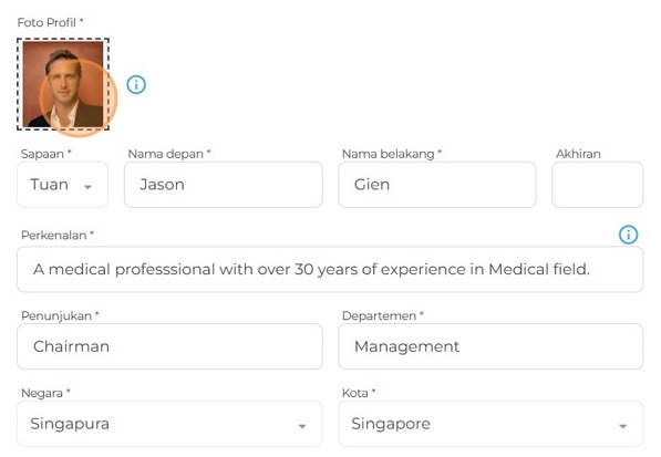 Klik ikon gambar untuk menambahkan atau memperbarui foto profil Anda. Hanya format JPG atau PNG yang diterima, dengan ukuran maksimum 2MB.