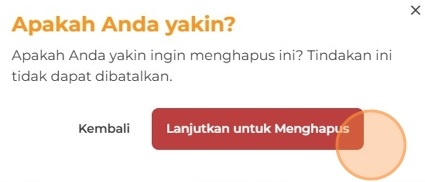 5. Klik Hapus untuk menghapus akses anggota. Pilih Lanjutkan untuk menghapus untuk mengonfirmasi tindakan.