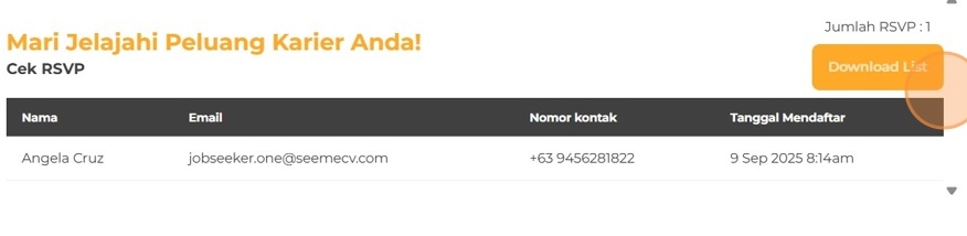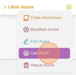 Klik Cek RSVPs untuk melihat jumlah RSVP atau total pendaftar acara Anda. Anda juga bisa mengunduh daftar RSVP dalam Excel.